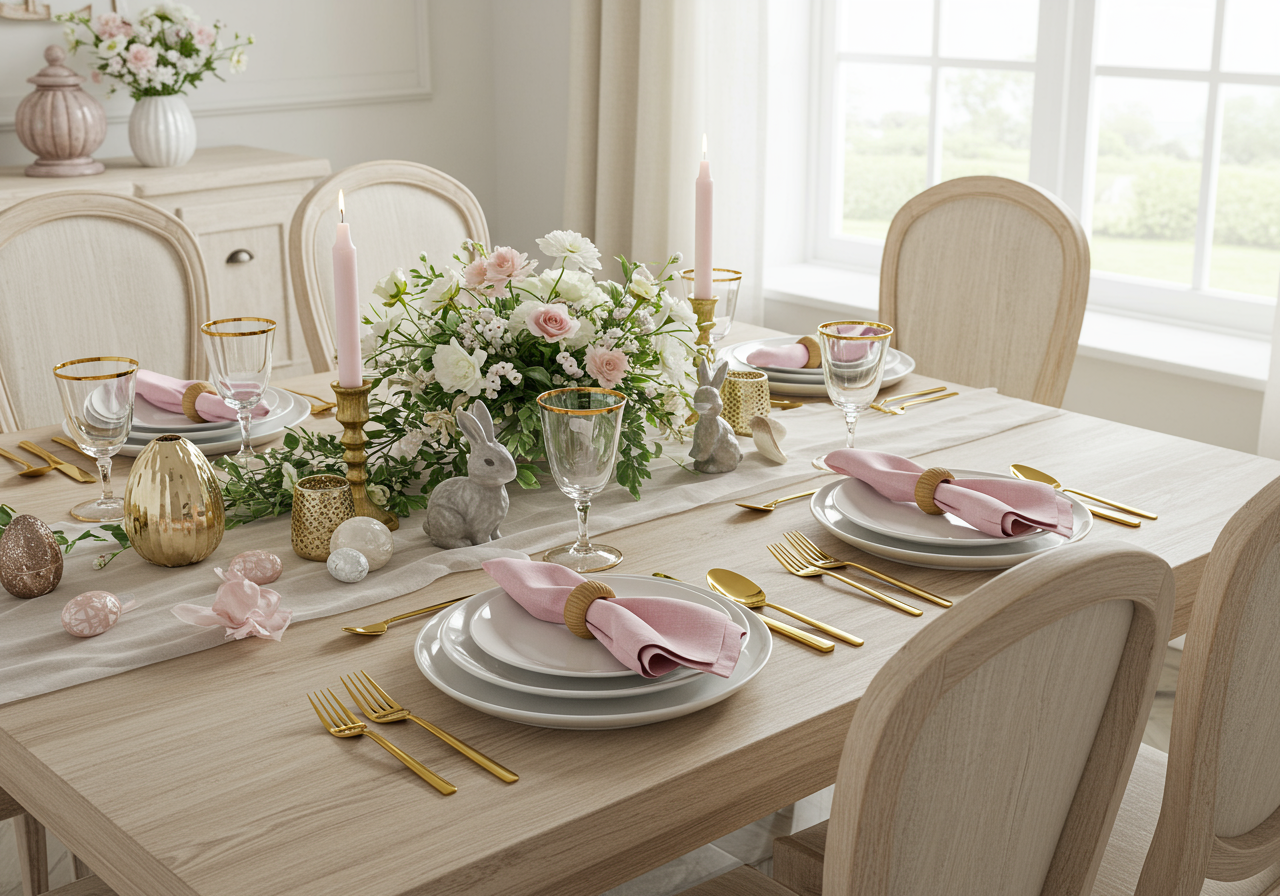 - Bunnies! You can never have too many bunnies at Easter. Cute bunny salt and pepper shakers, cream or gravy boats, and knickknacks can bring a little charm and character to your table.
