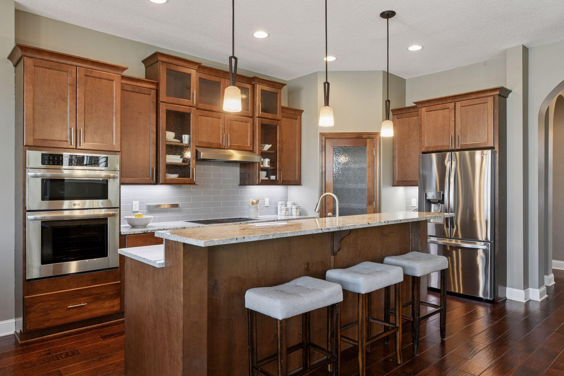 Nestled in the heart of demand Lakeside at Lake Riley, this beautiful home is where luxury meets ease. Thoughtfully designed to offer maintenance-free, main-level living, this townhome offers a seamless blend of comfort and sophistication. The kitchen is well equipped with new granite countertops and sink, tiled backsplash and stainless steel appliances from Wolf, LG and GE - this is a chef's dream! Just beyond, the Sun Room beckons you to relax with your morning coffee or unwind at the end of the day. Tucked away on the main level, the Primary Suite is designed for ultimate comfort. Featuring a renovated bathroom with quartz countertops, an on-demand steam shower, and two walk-in closets. Every detail has been considered to create a space that feels both elegant and functional. Adjacent to the Foyer, French doors lead into the Home Office where working from home is as relaxing as it is productive. Downstairs, the lower level is made for entertaining, with a second Family Room, a wet bar, and a Game Room--plus a space that is ready for your future wine cellar. Two junior bedrooms and a full bathroom offer comfortable accommodations for guests or family. For peace of mind, the home features a new roof, gutters and downspouts (2022), freshly painted interior (2022), freshly painted exterior (2023), new front landscaping by Bachman's (2024). Beyond your front door, the community offers incredible amenities designed to enhance your lifestyle and bring the neighborhood together. The newly updated private clubhouse is perfect for hosting gatherings, complete with a fully-equipped kitchen, bar, and catering conveniences. When the weather warms up, enjoy the outdoor swimming pool or take advantage of private lake access. For those who love being on the water, an association-owned pontoon boat is available for rental, making it easy to spend afternoons cruising Lake Riley. A state-of-the-art fitness center ensures you can stay active year-round.